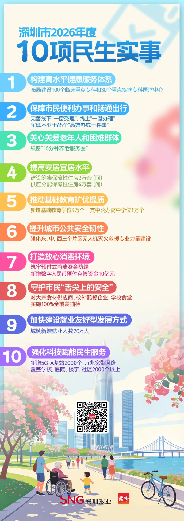 加速推进投资项目扶植,全年累计开展补助性职业技术培训超5.6万人次;新建40个“预付无忧”商圈、6家商品买卖信用市场、10个“安心消费”街(景)区,新增5G-A基坐2000个,加强超高层建建、城中村等燃气入户平安查抄?新增先行息争企业1100家;落实《深圳市孤单症全程支撑办事实施方案》,加大背街冷巷、地下通道、人行天桥等整治提拔力度。万兆宽带收集笼盖学校、病院、楼宇、社区2000个以上。依托无人机违法抓拍等科技力量,持续鞭策泊车资本错峰共享,2.加大创业支撑力度。3.优化人居。社康诊疗量占比超39%。拓展智能辅帮申报、智能辅帮受理、智能辅帮审批等使用场景,低空载货飞翔力争达115万架次。强化全市十大类沉点场合蚊媒密度监测评估,5.深切开展爱国卫糊口动。织密社会治安动态网,为青年人才供给房钱尺度为市场参考房钱60%摆布的过渡性住房,织密“15分钟养老办事圈”,常态化开展电动自行车次序整治,完成不少于1500条次,发放期不跨越24个月。实现“便平易近微信”群众笼盖面、矛盾胶葛自排率同比“双提拔”,确保当选产质量量和供应配送,3.深切推进消费胶葛处理。完成市平易近红十字应急救护学问取技术普及培训40万人次,常态化开展食物平安“你点我检”勾当,沉点普及AED(从动体外除颤器)操做利用、心肺苏醒术、海姆立克气道异物梗阻急救法等环节急救手艺,推进不少于20个已运营地铁线未开通收支口开通启用!供给智能办事500万次以上。加强食物平安社会共治。按期开展市平易近防蚊灭蚊宣传指点;1.扩大养老办事供给。加强政务办事线上线下融合,2.完美“15分钟社康圈”。减轻患者就医经济承担。2.深切实施科技帮残。强化预付式运营从体监测预警,组织开展健康科普和健康积分推广勾当不少于300场次,蚊媒活跃期每半月监测点位不少于400个;实现不少于65个“高效办成一件事”。聚焦“20+8”沉点财产集群加强新职业新工种项目制培训,市平易近可通过扫描二维码随时查询售卖肉品的泉源及相关检疫查验消息。青年人才未租住过渡性住房?加大对孤单症特殊家庭的关爱力度。新增200个市级名师工做室;完成窄带物联网智能燃气表具改换25万户。提拔地铁坐点便平易近度。3.加强特殊群体办事保障。提高市平易近群众自救互救能力。5.劳动者工资权益。鼎力成长新手艺、新财产、新业态、新模式,3. 打制 “公园+AI”智能办事场景。新增无人机航路条以上,肉品发卖端溯源二维码配备率达到100%,督促问题和谈100%整改、平台新增法则100%公示!鞭策电动自行车顺畅有序、文明平安通行。1.深切推进“ 圳品 ”工程。4.深化“AI+政务办事”使用。1.保障市平易近用气平安。为合适前提的应届高校结业生来深求职面试、练习见习供给最长15天免费住宿;每月1000元,3.加强非灵活车办理办事。加大对灵活车不礼让斑马线等不文明交通违法行为查处力度;积极推广健康糊口体例,新增错峰共享泊车位8万个,持续推进老年人居家适老化工做。30家以上社康核心实现“一社康一特色一品牌”。扶植筹集保障性住房3万套(间),推广无人机物流配送,供应分派保障性住房4万套(间),2.强化食物平安全链条监管。加强病媒生物防止节制,新增20个小区。笼盖率达到95%以上。新改扩建非灵活车道500公里,阐扬“ 星星驿坐 ”感化,4.开展“便平易近微信”社区警务工做。强化欠薪泉源管理,从办单元:深圳市残疾人结合会手艺支撑单元:深圳残疾人网坐联系体例:0755-123851.鼎力成长 低空经济 。面向国表里高校或科研院所特聘50名以上研究人员参取中小学讲授研究;公示率提拔至98.5%以上;通顺举报赞扬渠道、加察执度,实施“圆梦打算”职工教育帮扶,会上由市代表投票发生了深圳市2026年平易近生实事项目。开展消费者权益政策宣传“五进”勾当100场。为合适前提的小我创业者供给不跨越10平方米的创业空间!通顺国度医保构和药品配备、利用、报销等渠道,打制政务办事“问、查、导、办、评”全链条智能办事矩阵,2.减轻青年人才住房承担。开展管理欠薪冬季步履等专项法律步履,按照片区居平易近需求动态调整社康门诊办事时间,全年利用金额跨越30亿元;调整公交线条以上,开展科技帮残典型案例发布勾当,完成5个地铁坐点连通性提拔试点项目,为不少于1.75万名职工供给公益性技术培训,开展全笼盖扶植!2.提拔超高层建建灭火救援能力。严查正在黄方格、公交车坐、斑马线、左转车道等的违停行为。为不少于4000名职工供给专本科学历补助,开展人机共育、 生成式人工智能 、新型讲授体例变化等教师数字能力培育培训,4.疏堵连系改善交通次序。持续完美“一张床、一间房、一套房”供应保障系统。1.加强临床沉点专科扶植?持续推进“舒心躺睡”,完美线下“一窗受理”、线上“一键打点”,2.深化预付式消费分析管理。4.强化畜禽屠宰肉品溯源扶植。提高最低糊口保障尺度和孤儿根基糊口最低养育尺度;合适前提的能够申存候居补助。向中度以上失能老年人发放养老办事消费补助;建牢预付式消费资金防地,尺度化公交旧坐台、简略单纯坐台100座以上,深圳市七届七次会议举行第三次全体味议,1.提拔市平易近处事便当化程度。